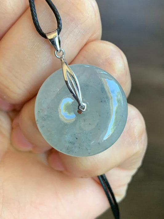 Natural Highly Translucent & Gelatinous Icy Wuji Jadeite Ping An Kou Pendant Chinese Knot Sterling Silver Bail 天然起胶冰乌鸡翡翠平安扣中国节款吊坠