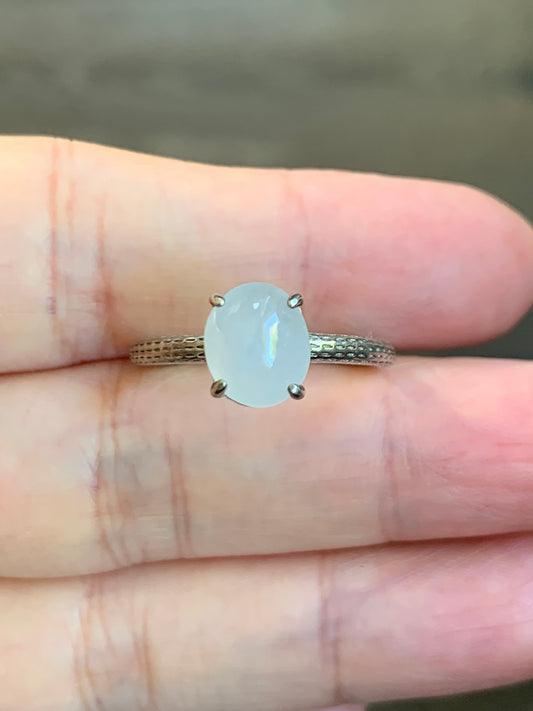 Natural Icy Translucent Gelatinous White Jadeite Ring Sterling Silver Size Adjustable 天然白冰翡翠蛋面银镶戒指 MBBA
