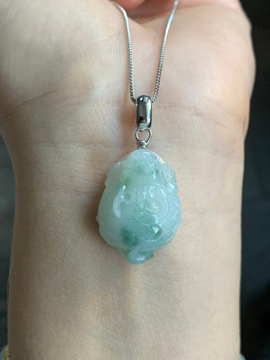 Natural Icy Translucent Gelatinous Green Marbled Jadeite Dragon Turtle Pendant Sterling Silver 天然糯冰胶飘花翡翠龙龟吊坠