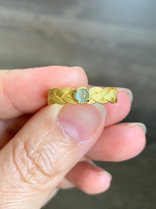 Natural Guatemalan Icy Translucent Sky Blue Jadeite Band Ring S925 Silver Ring Adjustable 天然冰天空蓝翡翠麻花款式银镶戒指