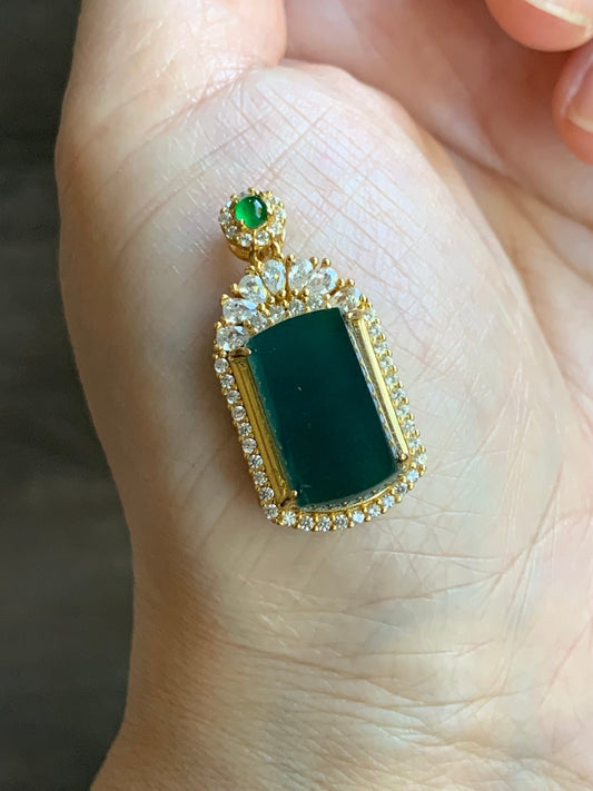 Certified Natural Guatemalan Icy Translucent Dark Teal Blue Jadeite Wu Shi Pai Pendant Sterling Silver Yellow Gold Finish 天然冰危老蓝水翡翠无事牌镶嵌吊坠
