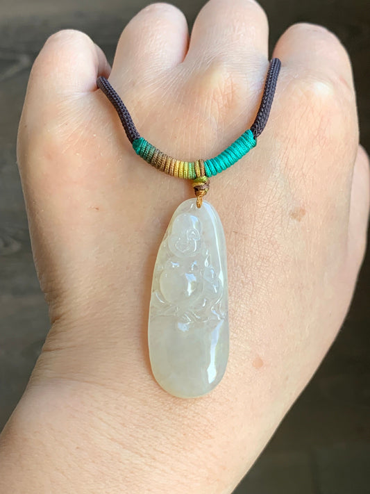 Natural Grade A Icy Translucent Yellow Sugar Jadeite Buddha Pendant Rope Necklace 26" Adjustable 天然冰糖雪梨黄翡翠佛公吊坠