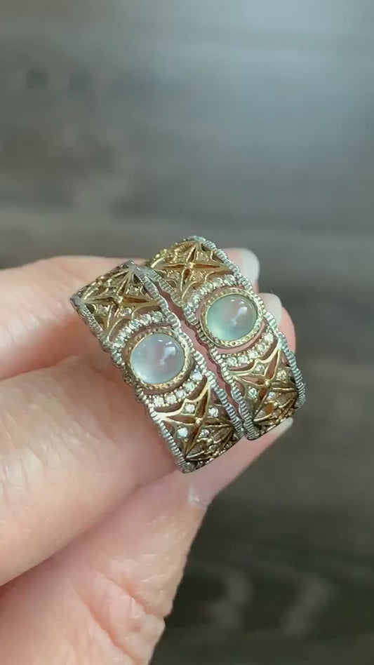 Natural Guatemalan Premium Icy Translucent Gelatinous Light Blue Jadeite Lotus Flower Rope Band Ring Sterling Silver Size 8.75 天然冰危淡蓝翡翠莲花绳戒
