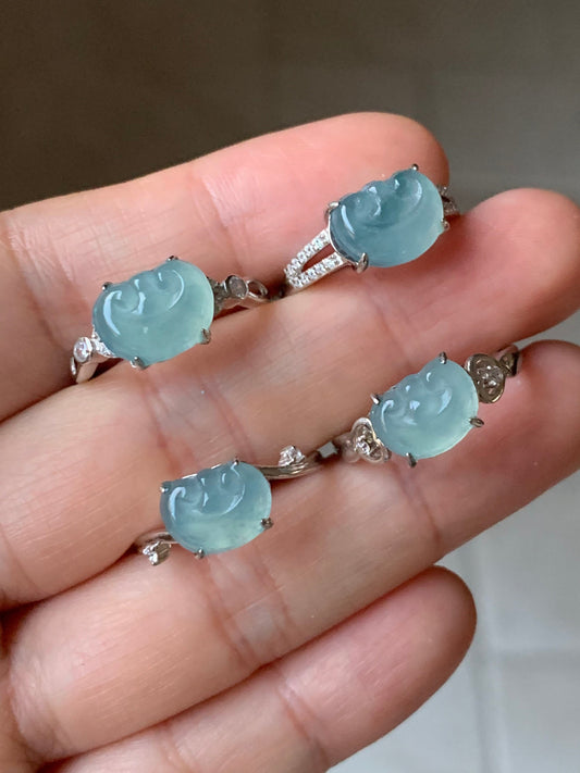 Guatemalan Natural Garde A Highly Translucent Sky Blue Jadeite Ruyi Ring S925 Silver Adjustable Sizes 天然高危蓝翡翠如意银镶戒指 WRY
