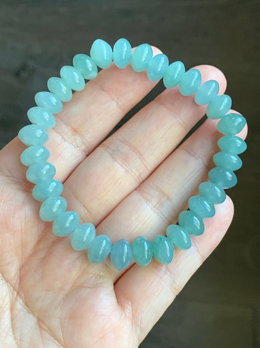 Certified Natural Guatemalan Icy Translucent Gelatinous Light Blue Jadeite Drum Beads Beaded Bracelet Stretchy 7” 26.11g 天然冰危蓝水翡翠鼓珠手串 3282
