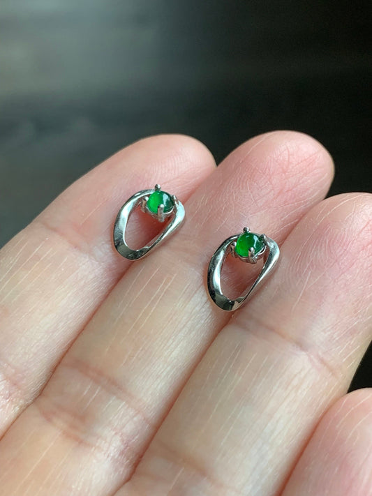 Petite Natural Guatemalan Icy Highly Translucent Vibrant Green Jadeite Stud Earrings S925 Silver Sterling 天然冰危绿翡翠银镶耳钉