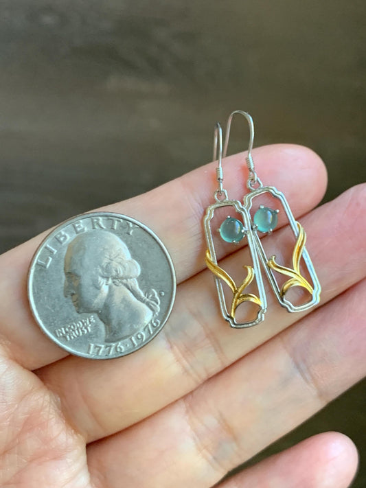Natural Grade A Guatemalan Icy Highly Translucent Pastel Teal Blue Jade Jadeite Dangle Earrings Sterling Silver 天然冰危淡蓝翡翠银镶耳钩 XED77