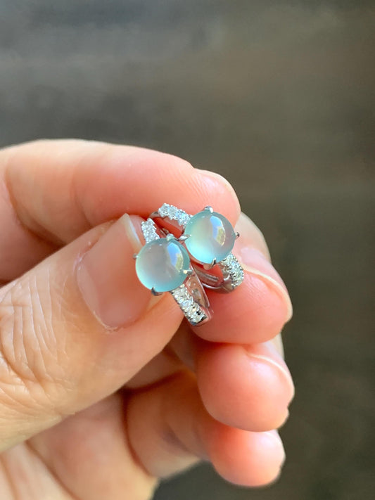 Natural Guatemalan Grade A Icy Highly Translucent Pastel Blue Jade Jadeite Small Hoop Huggie Earrings Sterling Silver 天然冰危淡蓝起光翡翠银镶耳包 LEB160