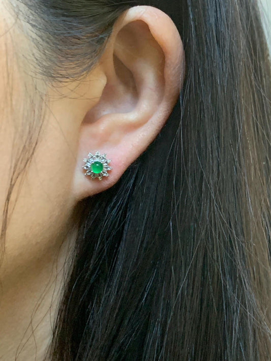 Natural Guatemalan Grade A Icy Translucent Vibrant Green Jade Jadeite Snowflake Stud Earrings Sterling Silver 天然冰危绿翡翠镶嵌雪花耳钉 WXH66