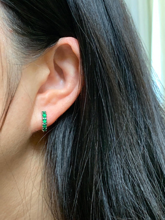 Natural Guatemalan Grade A Icy Highly Translucent Vibrant Green Jade Jadeite Hoop Huggie Earrings Sterling Silver 天然冰危绿起光翡翠银镶耳包 LEB160B