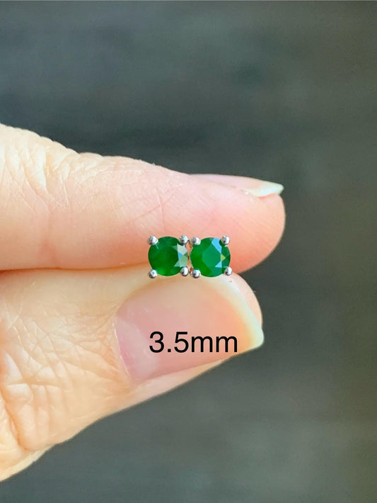 Certified Natural Guatemalan Icy Translucent Vibrant Green Jadeite Faceted Petite Stud Earrings Sterling Silver 2.9mm or 3.5mm 天然冰危绿翡翠钻石银镶耳钉