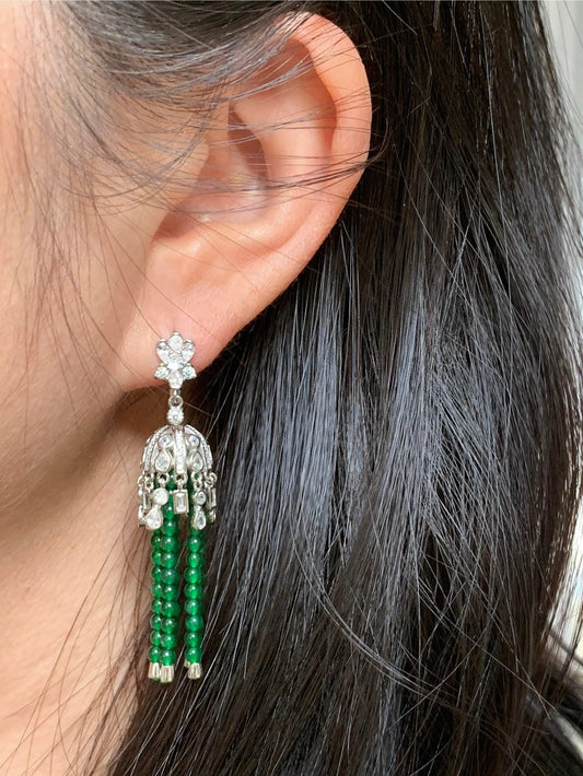 Certified Natural Grade A Icy Translucent Jadeite Beaded Dangle Earrings Sterling Silver 天然冰危绿小米珠耳包耳环 7844