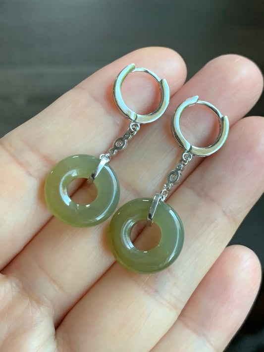 Natural Guatemalan Icy Translucent Yellow Jadeite Ping An Kou Donut Dangle Earrings Sterling Silver 天然冰危黄翡翠平安扣银耳包 S