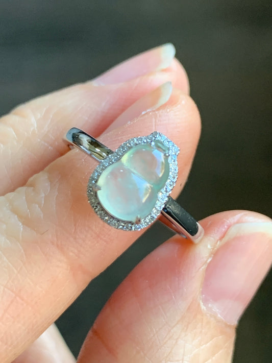Certified Natural Premium Highly Translucent Jadeite Hulu Gourd Ring 18K White Gold & Diamonds Sz 7 天然正冰起光起钢白冰葫芦钻石镶嵌戒指