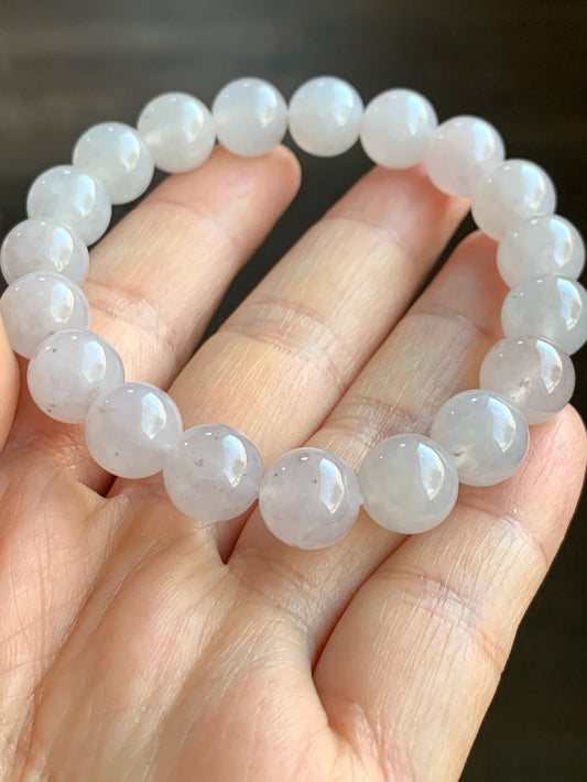 Certified Natural Grade A Icy Highly Translucent Gelatinous Pastel Dusty Rose Jadeite Large Beads Beaded Bracelet 10mm 7” 天然冰胶藕粉翡翠大卡手串 7850