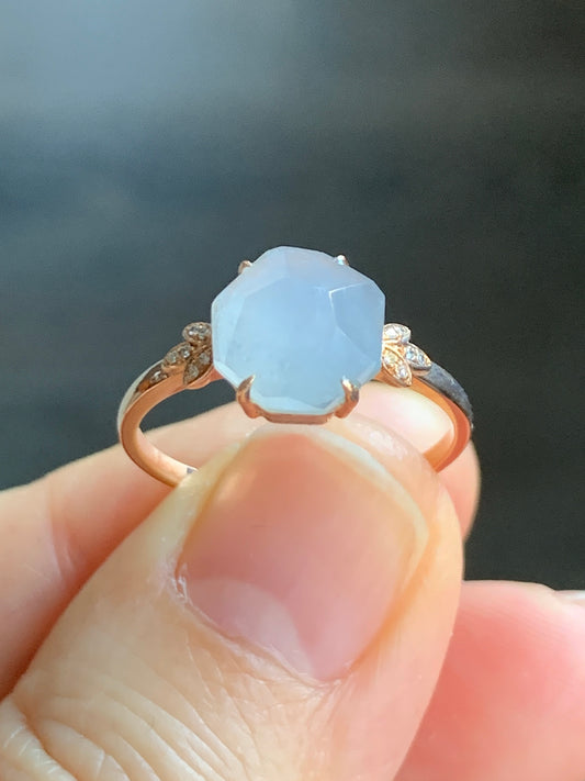 Certified Grade A Natural Icy Translucent Light Purple Jadeite Faceted Cabochon Ring 18K Rose Gold Diamonds Size 7 US 2.26g 天然冰紫翡翠切割面镶嵌钻石戒指