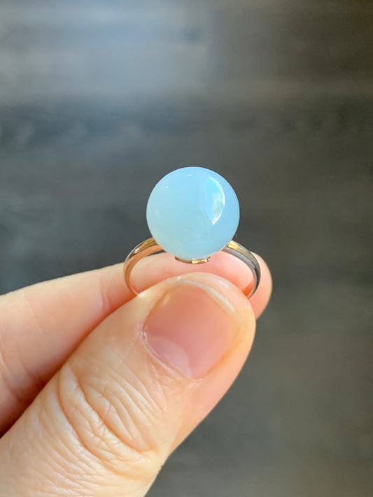 Certified Natural Grade A Icy Translucent Gelatinous Light Blue Jadeite Sphere Round Bead Ring 18K Rose Gold 4.71g sz 7 US 天然A货冰胶淡蓝翡翠单珠镶嵌戒指