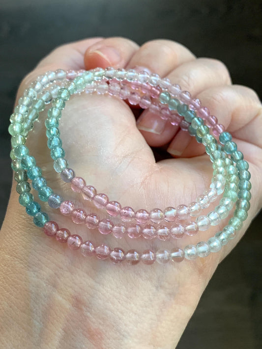 Certified Natural Icy Transparent Macaron Palette Gradient Tourmaline Petite Triple Layered Beaded Bracelets 3.7mm 6.75” 天然起光马卡龙渐变色碧玺手串 9340