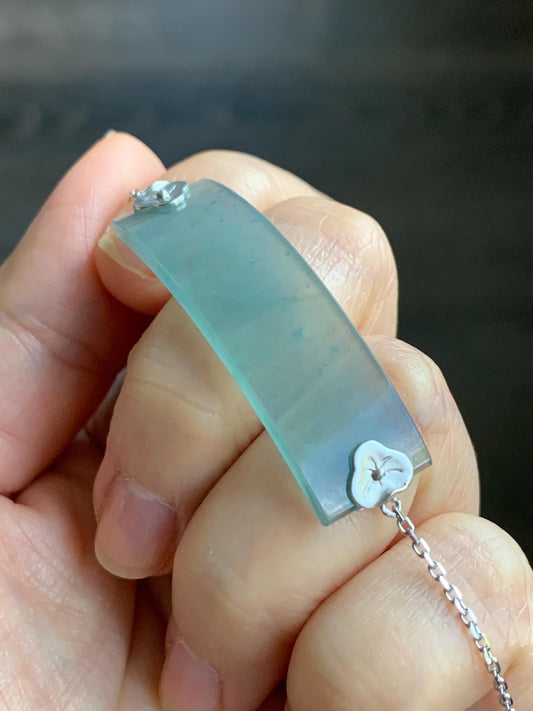 Certified Natural Guatemalan Icy Highly Translucent Dusty Blue Jadeite Betta Fish Bracelet 18K White Gold 6.25”-7.25” 天然冰危蓝绿翡翠斗鱼金镶手链 343