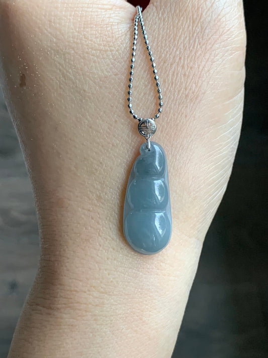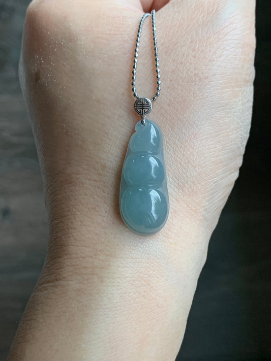 Natural Guatemalan Icy Translucent Light Dusty Blue Jadeite Peapod Pendant 18K White Gold 天然冰危蓝翡翠福豆吊坠 BTH113 B