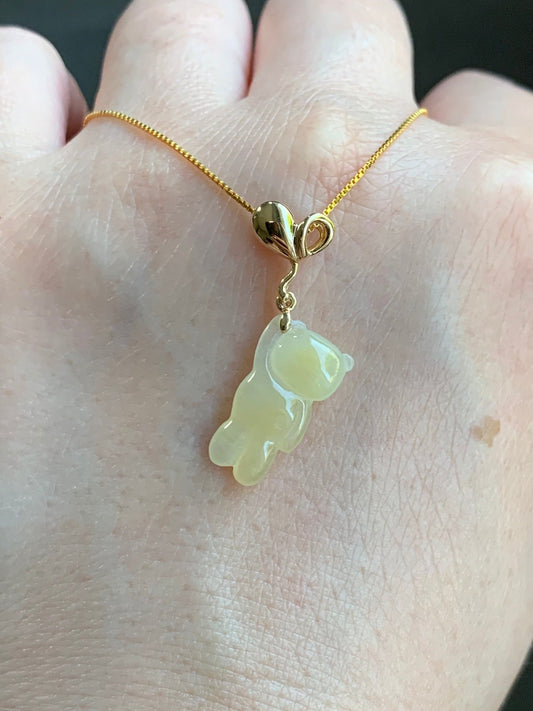 Certified Natural Icy Translucent Gelatinous Yellow Jadeite Terry Bear w/ Heart Balloon Pendant 18K Yellow Gold 天然冰胶翡翠小熊爱心气球吊坠 940