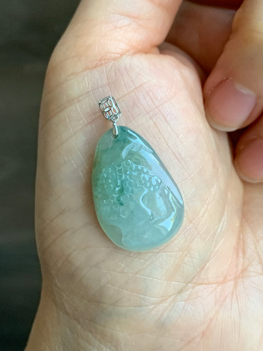 Natural Icy Translucent Gelatinous Light Green Jadeite Shan Shui Pai Landscape Scenery Pendant 18K White Gold 5g 天然冰晴绿翡翠精工雕山水牌吊坠