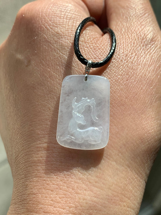 Natural Icy Highly Translucent White Jadeite Deer Tag Pendant 18K White Gold 天然正冰鹿牌镶嵌吊坠