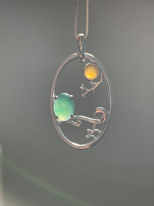 Certified Natural Icy Green & Yellow Jadeite Pendant S925 Sterling Silver 天然冰绿加黄翡翠镶嵌吊坠 358