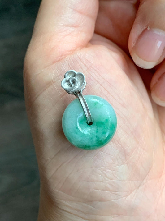 Certified Natural Translucent Green Marbled Jadeite Thick Ping An Kou Donut Pendant Custom Sterling Silver Bail 天然飘花翡翠肥扣平安扣吊坠 1669