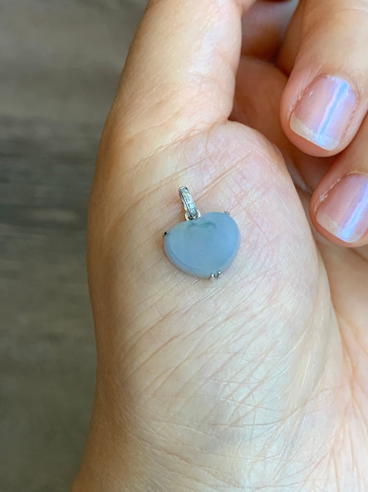 Certified Natural grade A Icy Translucent Light Purplish Blue Jadeite Heart Pendant 18K White Gold & Diamonds 天然冰蓝紫翡翠爱心镶嵌吊坠 0341