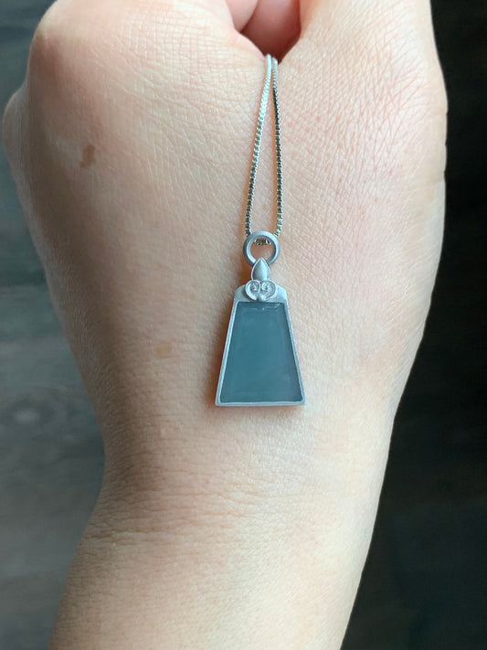 Certified Natural Guatemalan Icy Translucent Gelatinous Light Dusty Blue Jadeite Wu Shi Pai Pendant S925 Sterling Silver 天然冰危蓝翡翠银镶无事牌吊坠 1655