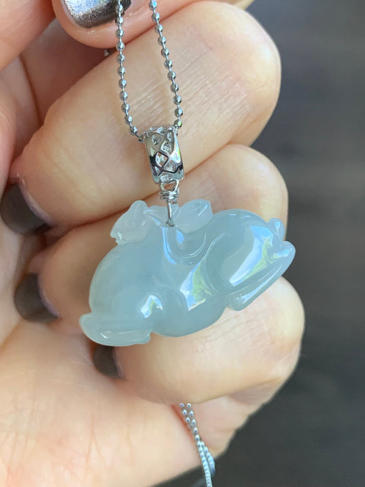 Stunning Natural Icy Translucent Gelatinous Light Blue Sky Blue Jadeite Carved Tang Horse Pendant Sterling Silver 天然冰胶天空蓝翡翠唐马银镶吊坠