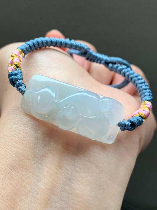 Stunning Natural Icy Translucent & Gelatinous Sky Blue Jadeite Carved w/ Ruyi Rope Bracelet Adjustable 天然冰胶天空蓝翡翠如意手牌手绳