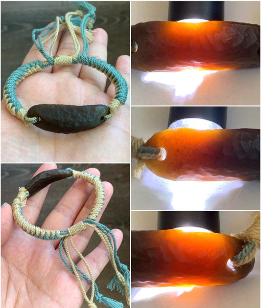 Natural Nephrite Hetian Jade Cuff Rope Bracelet Translucent Dark Caramelized Sugar Adjustable 6.25" 11g 天然焦糖和田玉手牌手绳