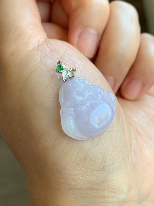Natural Grade A Icy Translucent Light Purple Jadeite Buddha Pendant Guatemalan Green Jadeite Sterling Silver Bail 天然冰淡紫翡翠佛公吊坠危绿翡翠银扣头 BZB260