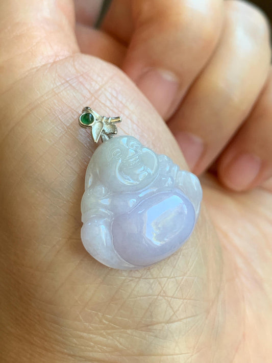 Natural Grade A Icy Translucent Light Purple Jadeite Buddha Pendant Guatemalan Green Jadeite Sterling Silver Bail 天然冰淡紫翡翠佛公吊坠危绿翡翠银扣头 BZC260
