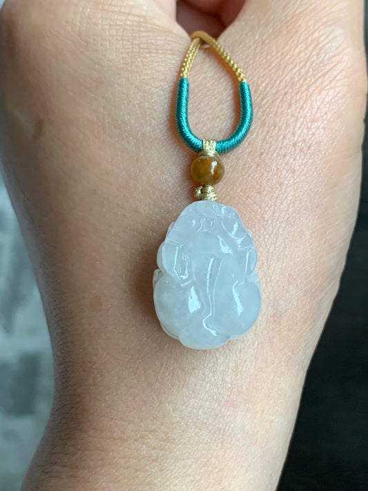 Natural Translucent & Gelatinous Icy White Jadeite Pixiu Pendant Rope Necklace 24" Adjustable 天然白冰胶翡翠貔貅吊坠项链