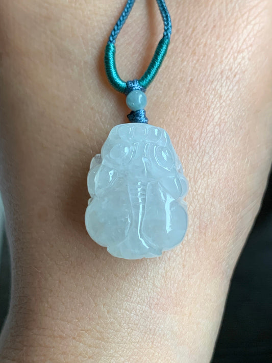 Natural Icy Translucent Gelatinous Dark "Tea" Green Jadeite Buddha Pendant Rope Necklace Sterling Silver 28” 天然老油青翡翠佛公吊坠 LYQ225D