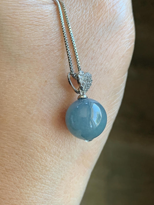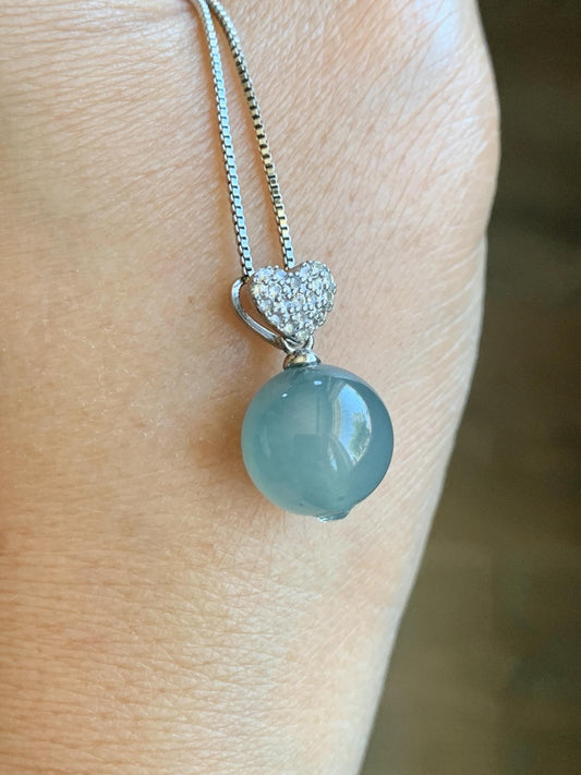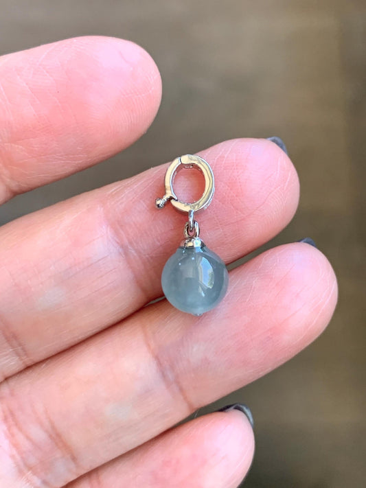 Natural Grade A Guatemalan Icy Highly Translucent Pastel Teal Blue Jade Jadeite Bead Sphere Pendant Sterling Silver 4g 天然冰危淡蓝翡翠单珠镶嵌吊坠 WTL150