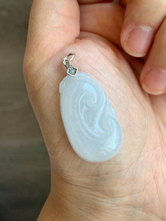 Natural Grade A Icy Translucent Gelatinous Icy White Jade Jadeite Carved Ruyi Pendant Sterling Silver 8g 天然白冰胶翡翠如意吊坠 MBR103