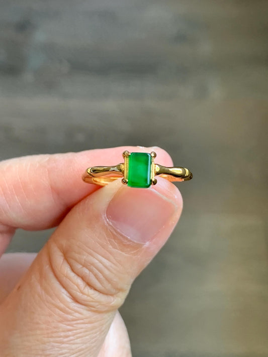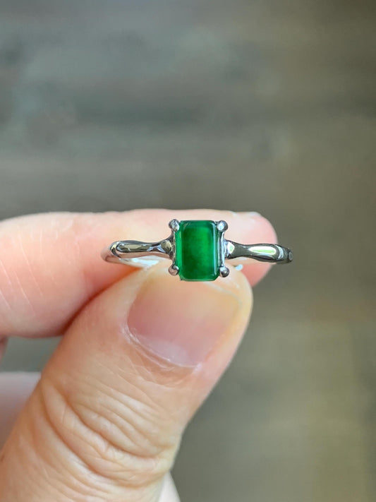 Natural Grade A Guatemalan Icy Translucent Vibrant Green Jade Jadeite Bamboo Ring Sterling Silver Size Adjustable 天然冰危绿切割面翡翠竹节银镶戒指 ZJL55C