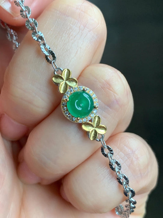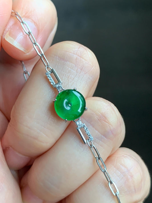 Natural Guatemalan Icy Translucent Vibrant Green Jade Jadeite Mini Ping An Kou Donut Chain Bracelet Sterling Silver 天然冰危绿翡翠迷你平安扣银手链 PAL128Y