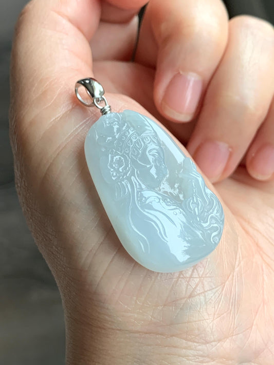 Natural Grade A Icy Translucent Gelatinous Pastel Blue Jade Jadeite Carved Beauty Girl Pendant Sterling Silver 12g 天然冰胶淡蓝翡翠小美女吊坠挂件 MDL220