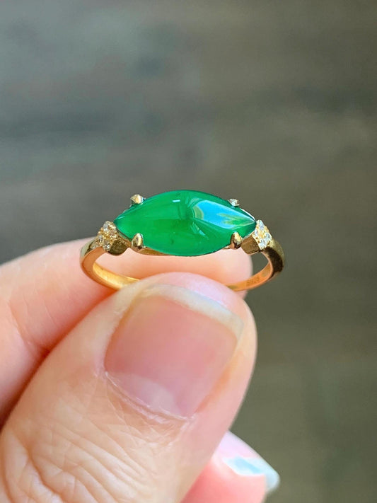 Natural Grade A Guatemalan Icy Translucent Vibrant Green Marquise Jadeite Ring Sterling Silver Size Adjustable 天然冰危绿马眼翡翠银镶戒指 WLD150A