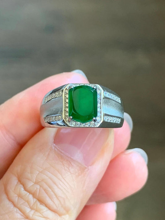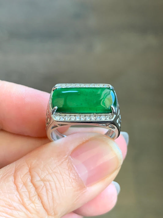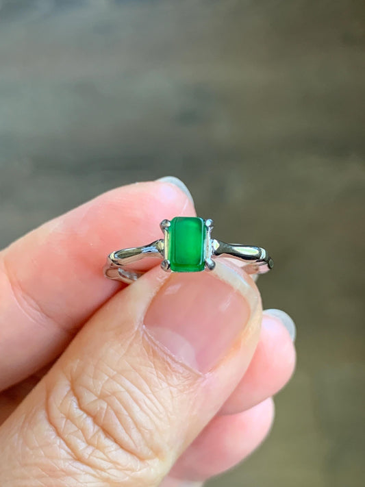 Natural Grade A Guatemalan Icy Translucent Vibrant Green Faceted Jadeite Ring Sterling Silver Size Adjustable 天然冰危绿翡翠切割面银镶戒指 EML110