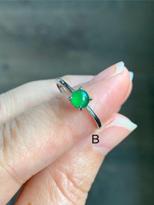 Natural Grade A Guatemalan Icy Translucent Vibrant Green Jadeite Solitaire Ring Stackable Sterling Silver Adjustable 天然冰危绿翡翠银镶戒指 XDK165