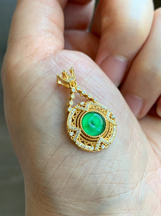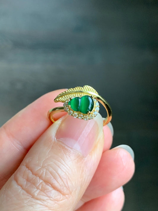 Natural Grade A Guatemalan Icy Translucent Intense Green Jadeite Hulu Gourd Ring Sterling Silver Yellow Gold Finish 天然冰危绿翡翠葫芦银镶戒指 JHL66