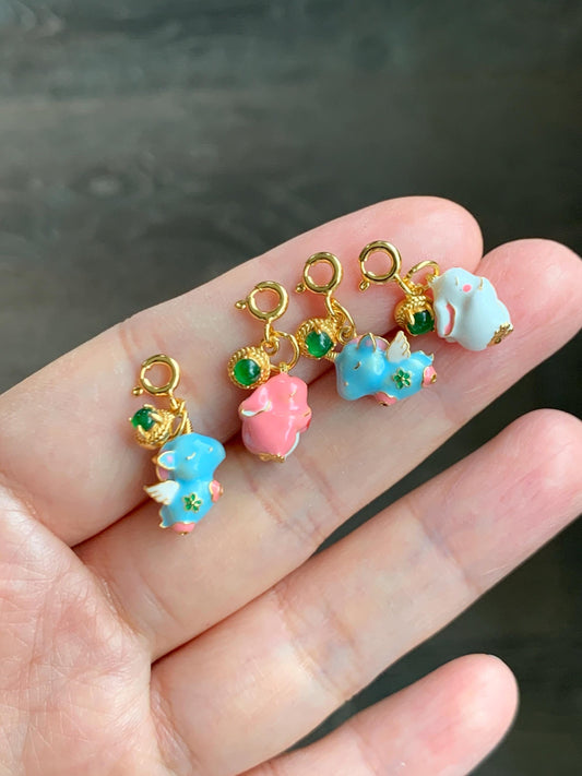 Natural Grade A Guatemalan Icy Translucent Vibrant Green Jade Jadeite Enamel Petite Rabbit or Unicorn Charm Pendant Sterling Silver WLDL44-A