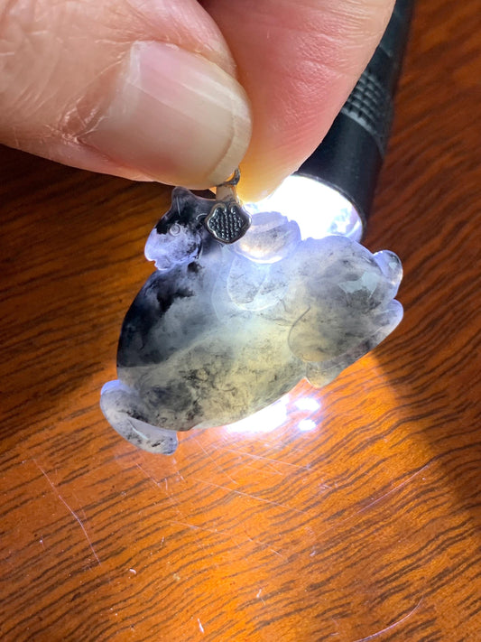 Natural Grade A Icy Translucent Gelatinous Icy White Jade Jadeite Carved Tang Horse Pendant Sterling Silver 9g 天然冰细糯淡蓝底翡翠唐马银镶吊坠 TMQ160