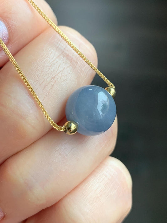 Natural Guatemalan Icy Translucent Purplish Blue Jadeite Round Bead Sphere Pendant Sterling Silver Chain 17.5” adjustable 5g 天然冰危蓝紫翡翠圆珠项链